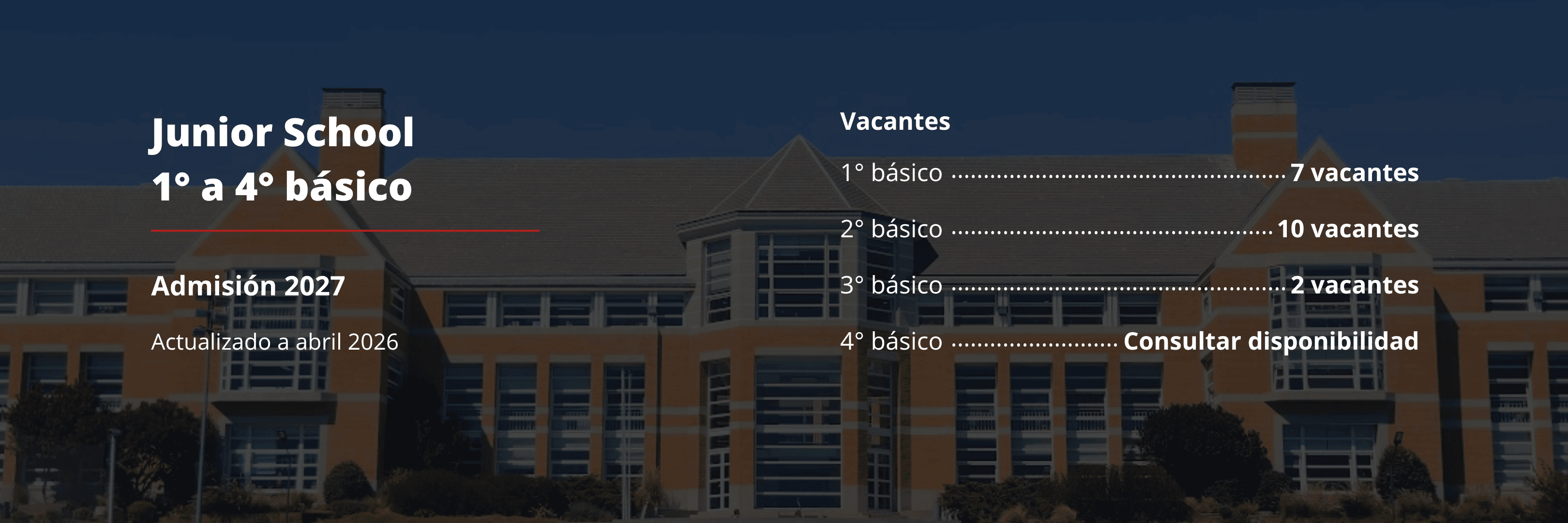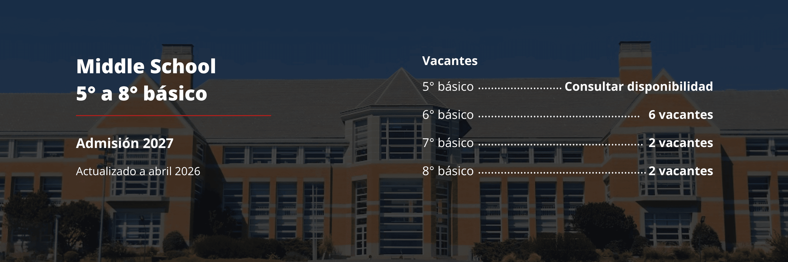 No existen vacantes disponibles para estos niveles, sin embargo, se sugiere contactar a Encargada de Admisión, Paulina Moreno (pmoreno@stmargarets.cl), por si existen actualizaciones.
