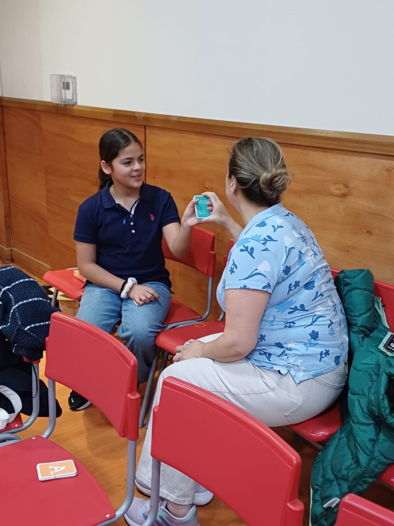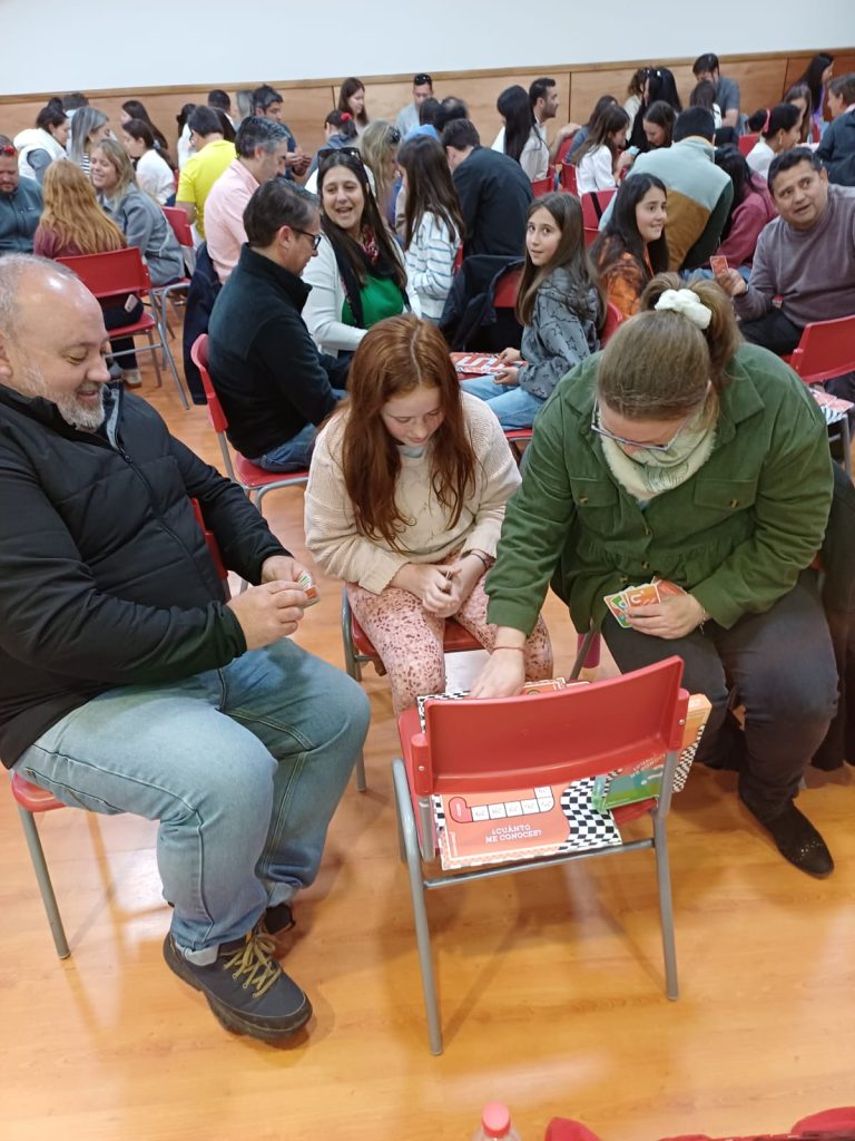 En una mañana entretenida, las familias participaron en actividades dinámicas que buscaron fortalecer el vínculo entre padres e hijas. Las alumnas de 5° básico abordaron la temática “¿cuánto me conoces?”, mientras que las de 8° básico trabajaron en torno a la pregunta “quiero saber de ti”.