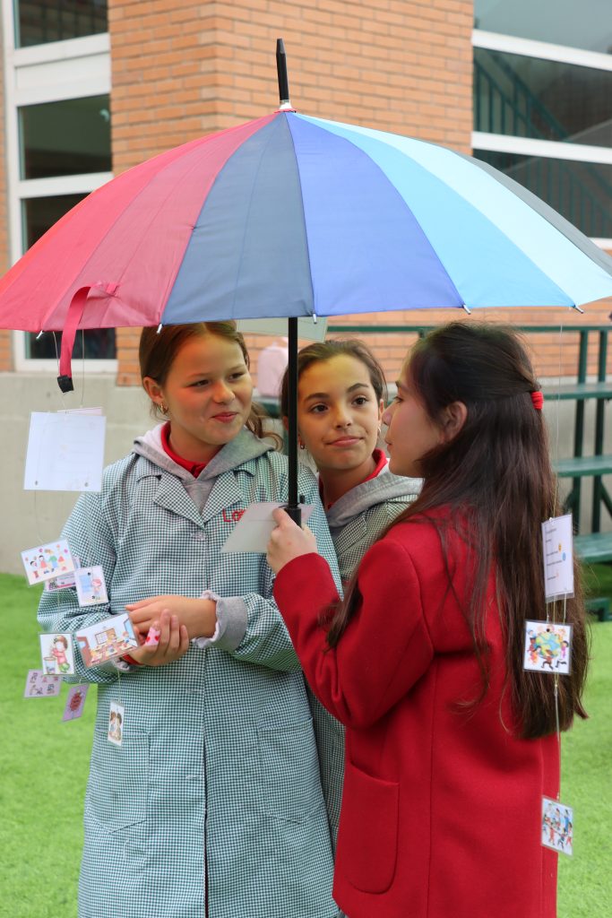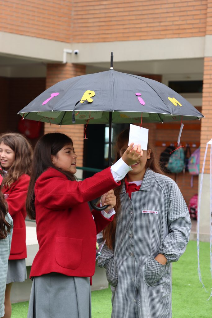 La tarea consistió en intervenir un paraguas con información sobre los derechos y deberes de los ciudadanos, para luego presentarlo a las alumnas de 4° básico, compartiendo y explicando lo aprendido en clases.
